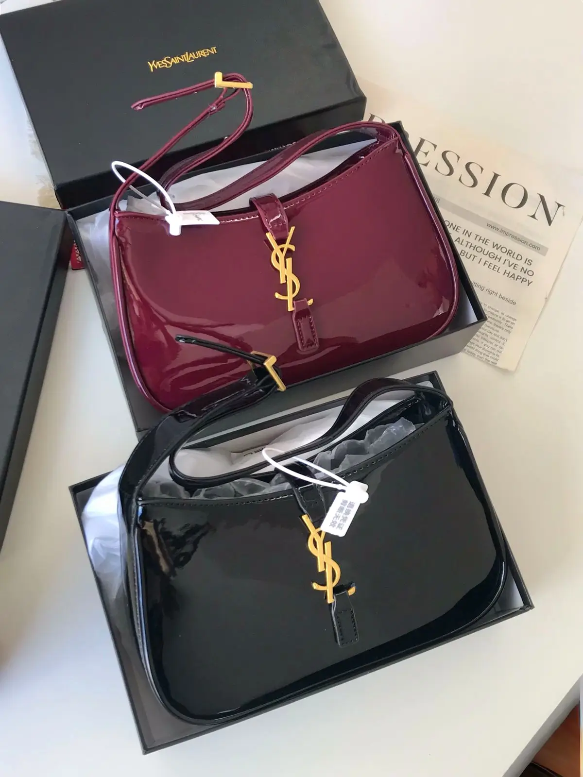 تألقي بأناقة ولمعان مع شنط جلد ذات لمعه من ماركة سان لوران الفاخرة.