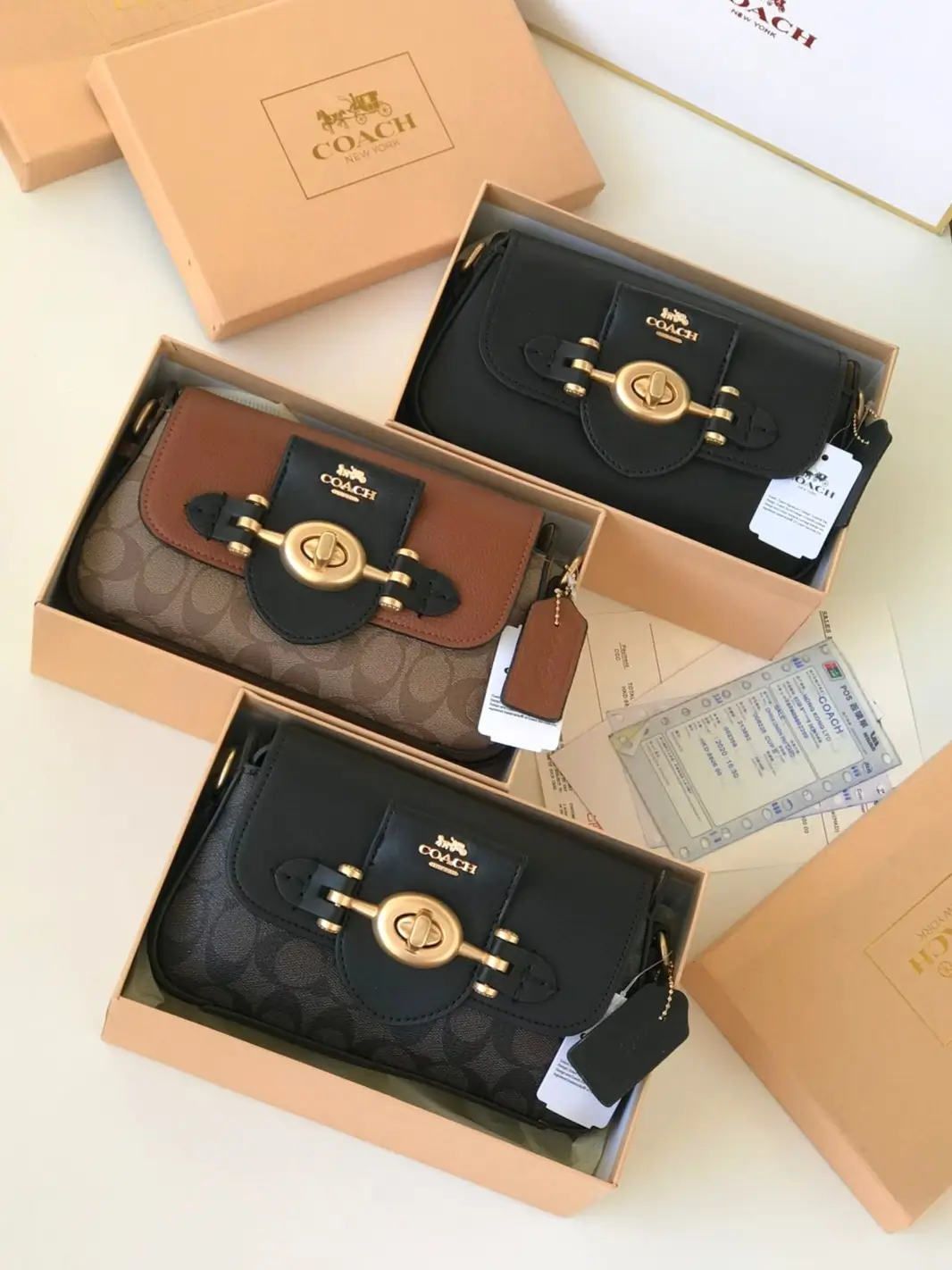 كما تأتي شنطة كوتش مع ملحقات الماركة علبة وشوبنج وشهادة الماركة.