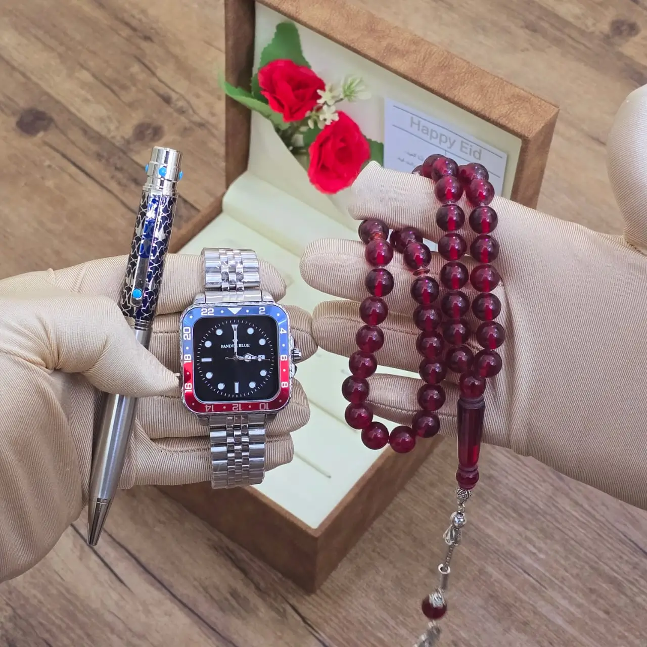 نقدم لك طقم ساعه وقلم وسبحه رجالي فاخر يناسب جميع المناسبات.