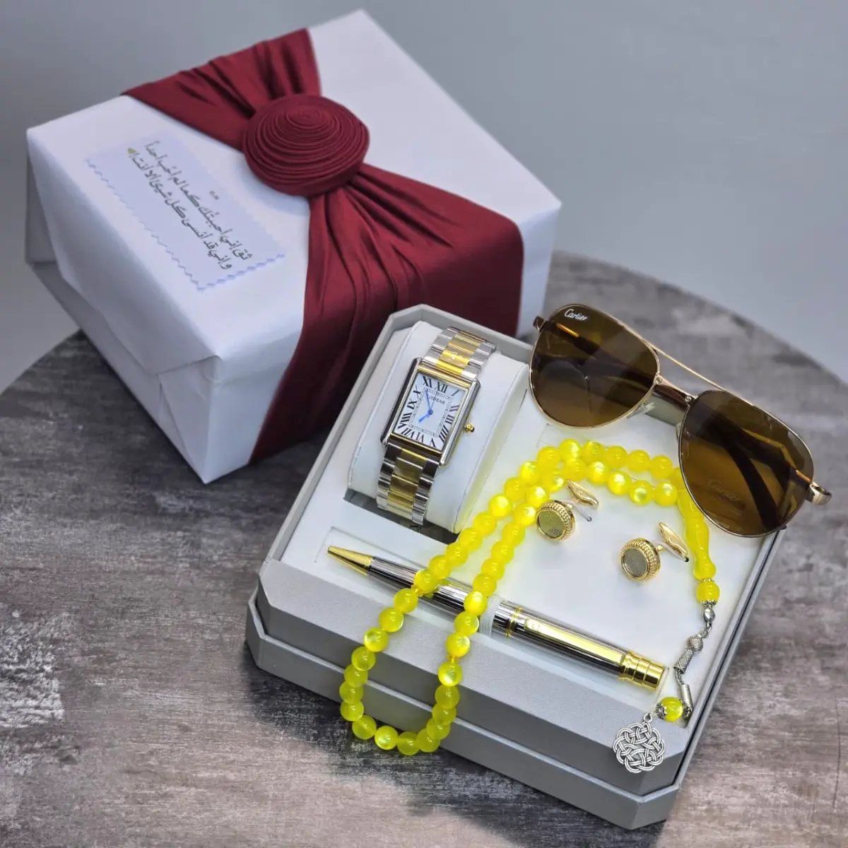 هديه رجالي طقم ساعة وقلم وكبك مع نظارة