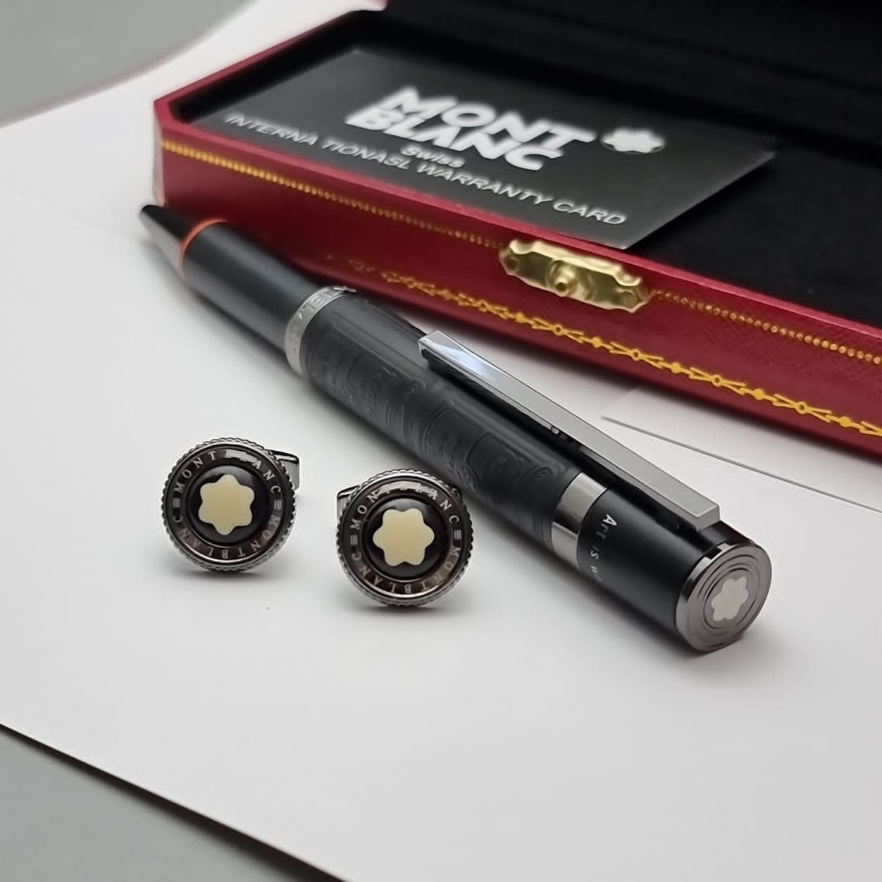 استمتع بلمسة من الأناقة مع اقلام وكبكات من ماركة مونت بلانك موديل بلاتينيوم حجم كبير الراقية والمميزة.