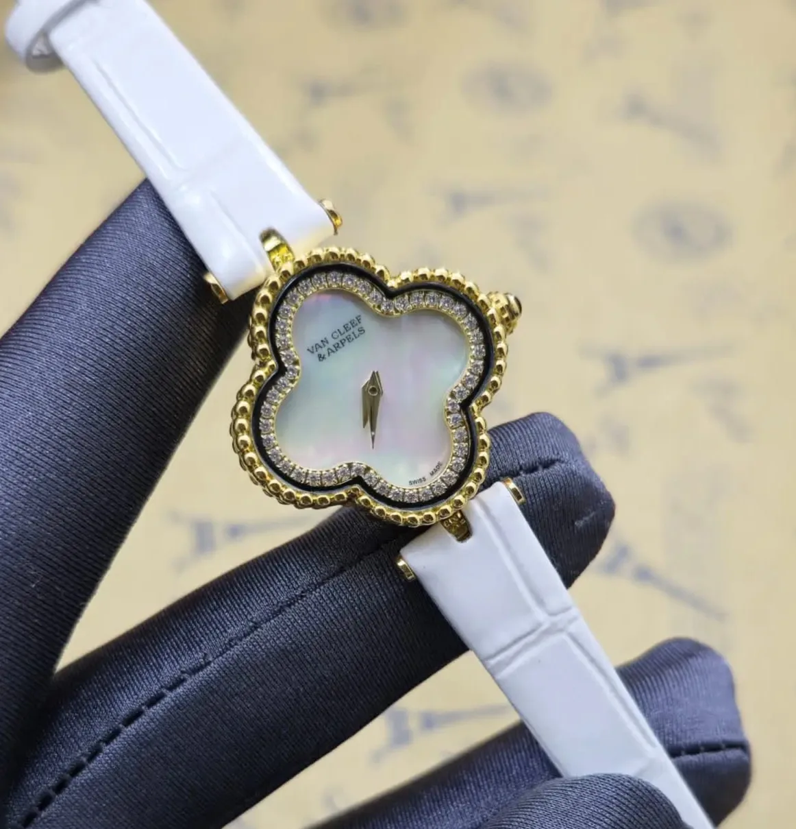 تألقي بأناقة مع ساعات فان كليف النسائية ذات الإطار الزركون والحزام الجلد.