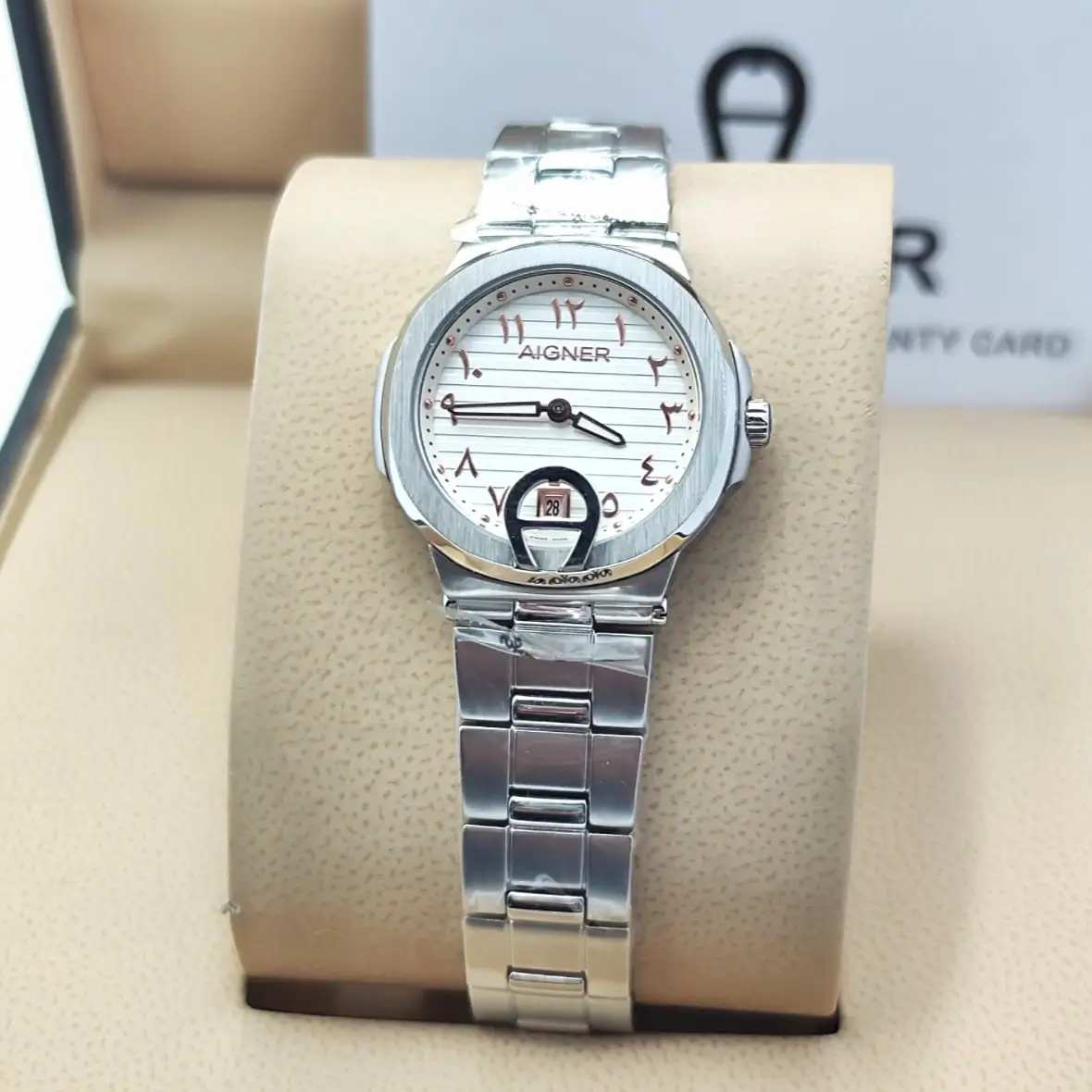 تأتي الساعة مع كرت الماركة، وتتوفر ملحقات الماركة بسعر إضافي حسب الطلب.