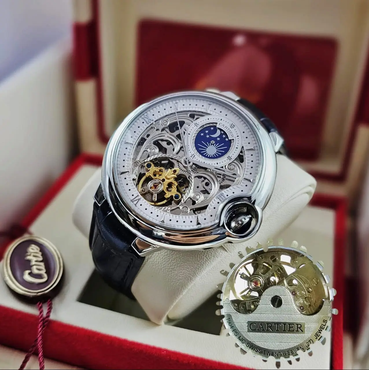 امنح إطلالتك لمسة من الفخامة مع ساعة كارتير بالون بلو الرجالية، بسير من الجلد عالي الجودة.