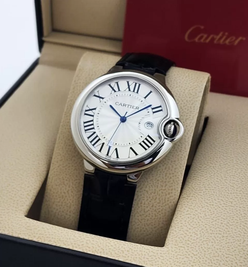 تتميز ساعات كارتير بتصميمها الفريد والأنيق، حيث تتميز بقرص ساعة كبير الحجم وعقارب دقيقة وثواني بارزة، ما يسهل قراءة الوقت بسهولة ودقة. تتوفر الساعة بألوان متنوعة وتصاميم مختلفة لتناسب ذوقك الشخصي وتكمل إطلالتك الأنيقة.