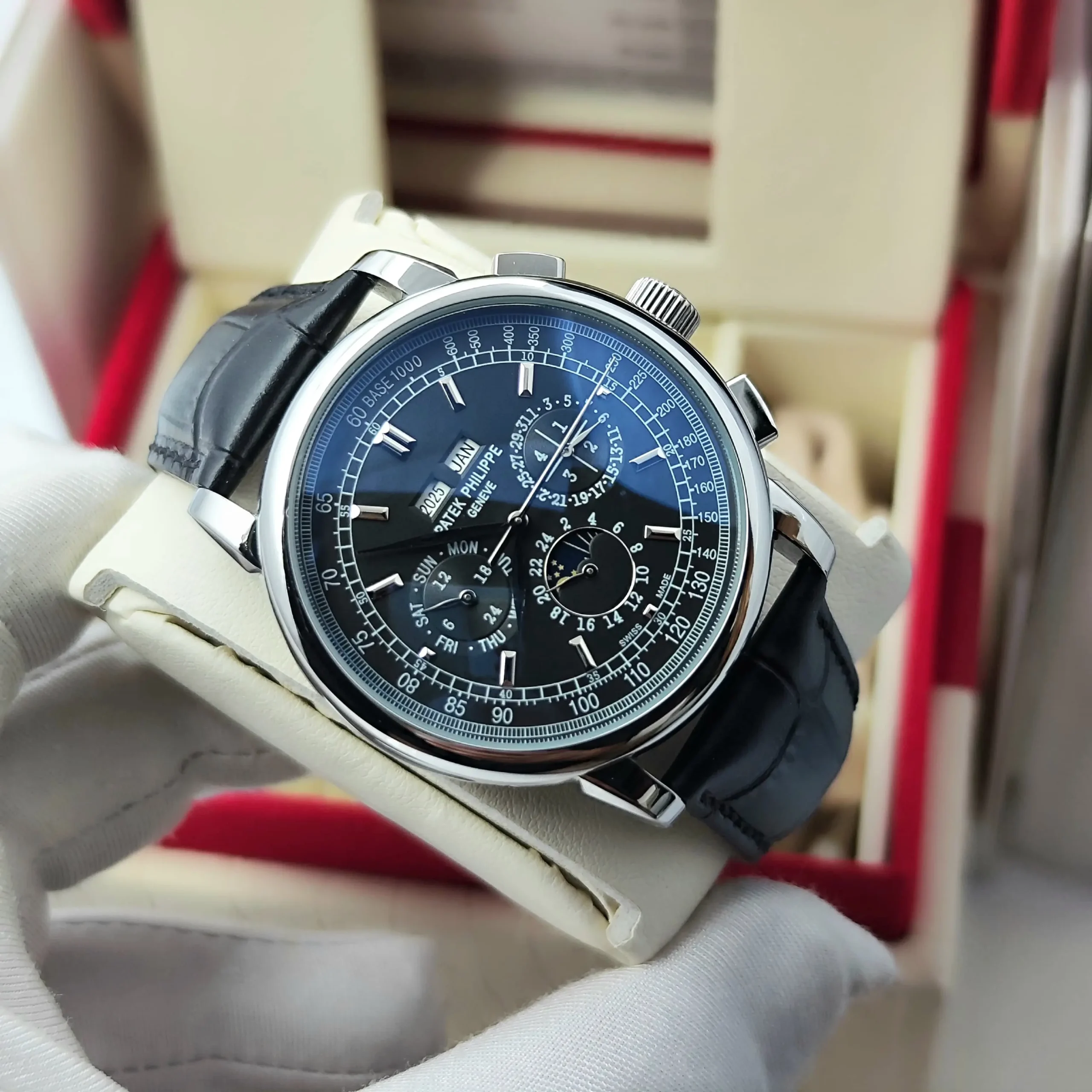 استمتع بأناقة ساعه باتك فلب الرجاليه الأوتوماتيكية، المصنوعة من الجلد الفاخر.
