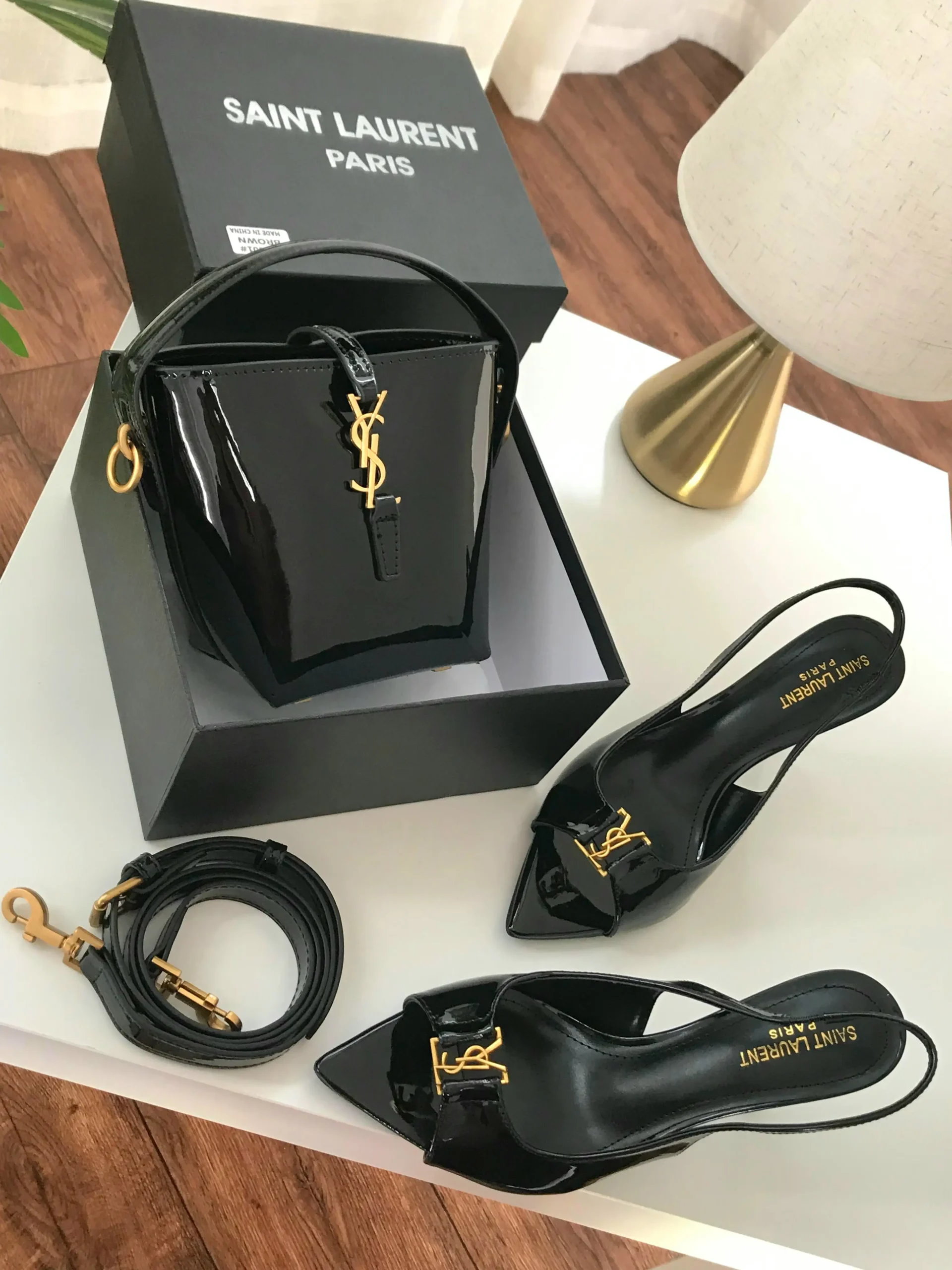 تألقي بأسلوب فاخر مع طقم شنطه وكعب ماركة سان لوران، المصمم بجودة عالية ولمسات راقية: