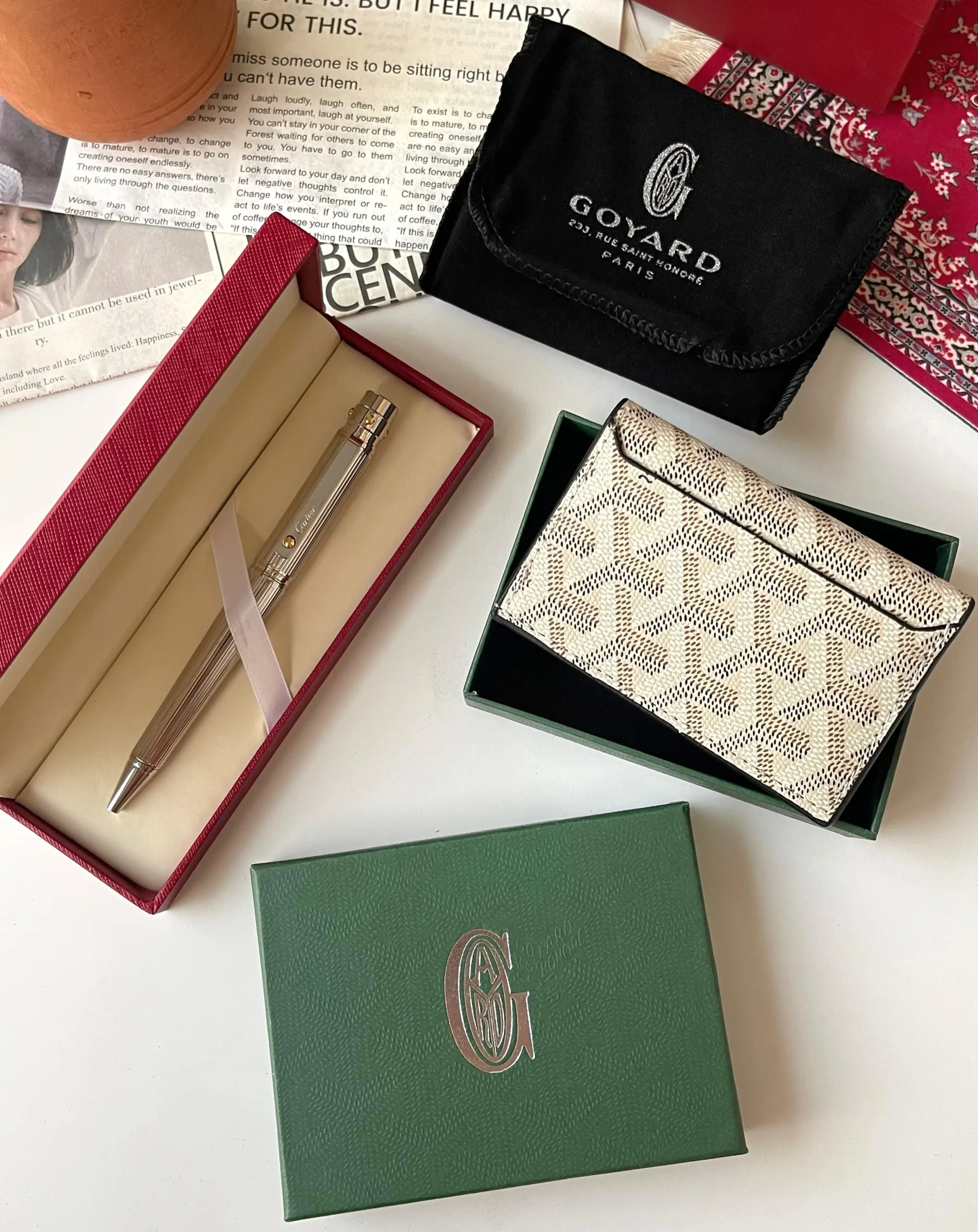– محافظ من ماركات كارتير، جويارد، وقوتشي: تصميمات أنيقة وعملية تناسب جميع الأذواق.