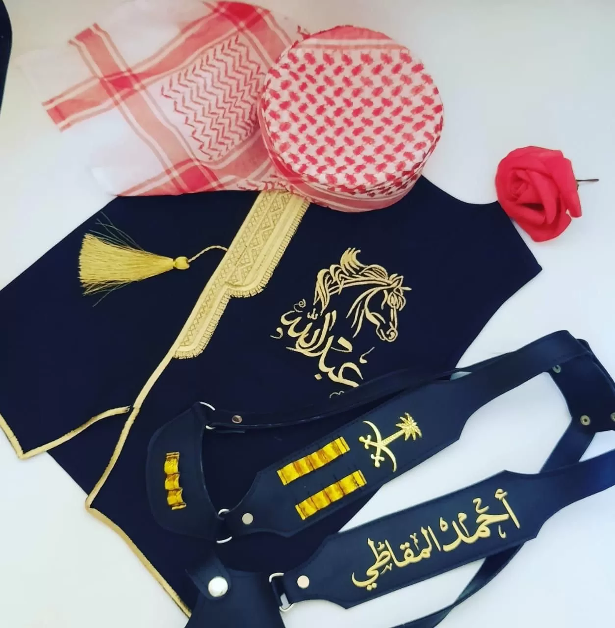 اجعل طفلك يشعر بالثقة والأناقة مع طقم ولادي بالاسم يتضمن الطقم سديري الاطفال مع مجند وطاقية شماغ ولادي. تتوفر الأطقم بمقاسات من 8 أشهر حتى 12 سنة. اجعل طفلك يبدو أنيقًا ومميزًا مع طقم الأطفال الفخم والأنيق.