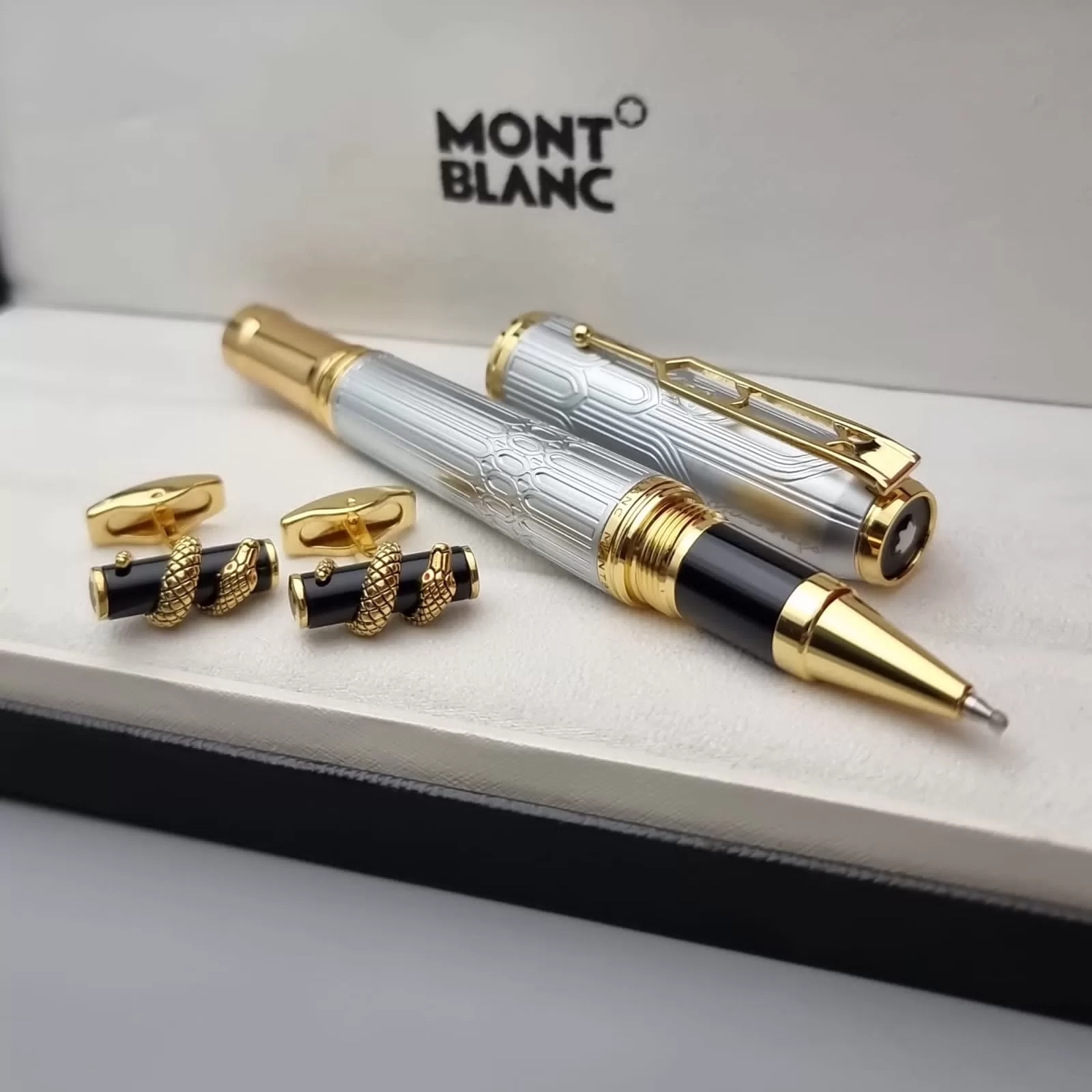 اكتشف الفخامة في أدق تفاصيلها مع هذا الطقم الرجالي المميز من مونت بلانك، والذي يجمع بين قلم أنيق وكبك راقٍ ضمن موديل “فيكتور هوقو” الذي يُجسد روح الإبداع الكلاسيكي بتصميم عصري استثنائي.