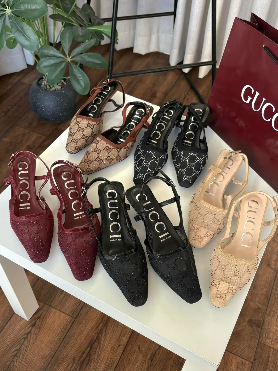أبرزي أناقتك مع أحذية الكعب ماركةقزتسالنسائية الجديدة من قوتشي Gucci، المصممة بعناية لتجمع بين الرقي، الراحة، وجودة التصنيع الفاخرة. كل خطوة تعكس أسلوبك الفريد وثقتك العالية.