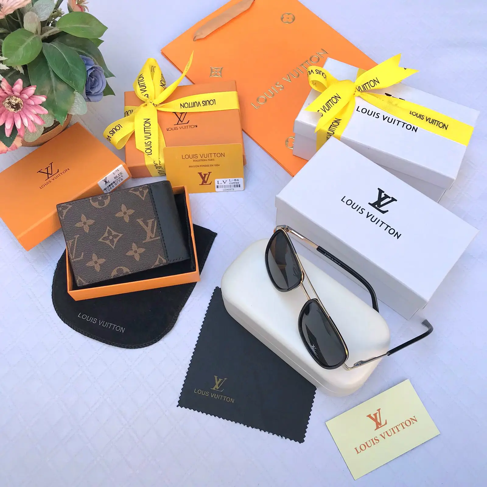 - طقم هدايا مكون من نظارة ومحفظة من لويس فيتون.