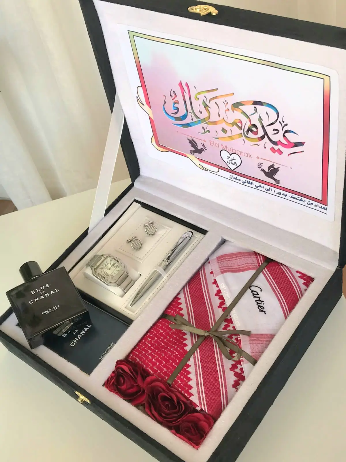 اكتشف جديدنا الفاخر، طقم هديه زواج رجاليه مميزه تم تصميمها خصيصًا لإضفاء لمسة من الفخامة على كل مناسبة. يحتوي الطقم على: